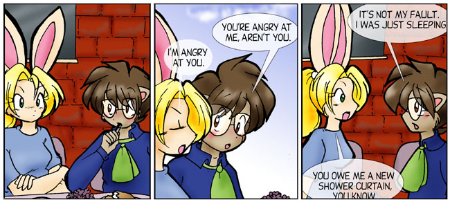 In my defense, Kimberly's reaction isn't so much an "Eek! He saw me naked and must be some kind of pervert". It's a subtly combination of "What the hell were you doing there?", "That was a surprise", and, of course, "You owe me a new shower curtain".
