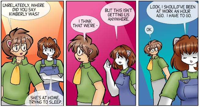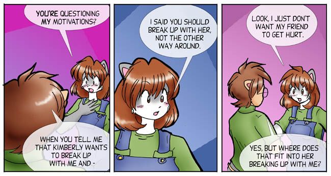 As I mentioned last week, if I aimed it wrong, Brisbane and Kimberly wouldn't get together. That's what happened in the first draft. In a best-case scenario, I could've had them reconcile a bit, go on another date - circling around again to get to the turn I missed.