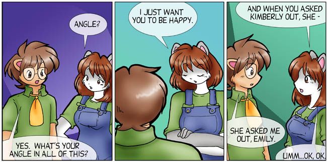Why? Because it was important to show that Emily was working from incomplete information and was wrong. I don't do that often; most of the times, characters are honest and correct because it usually takes a lot of time to show that they're lying or wrong, and it isn't worth it.