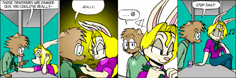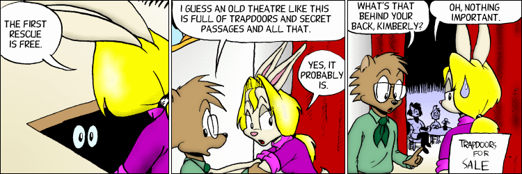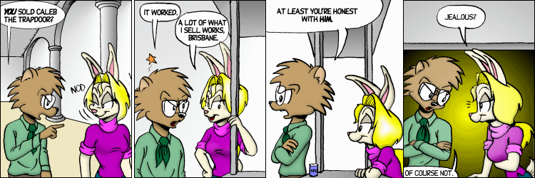 Now, the only non-working thing Kimberly sold Brisbane, at that point, were the jokes. Whether they were defective or not is a matter of opinion. That arc aired after this one, anyhow (due to art delays). I wish I had done a few more weeks of buildup to animosity.