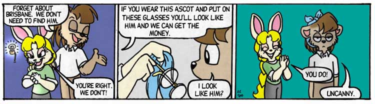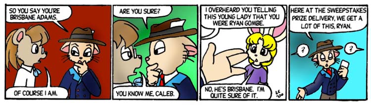 So, does Kimberly believe Caleb or is she just putting Brisbane on? At the time, it was the former and I considered "believes anything if there's enough money involved" as a personality trait. Fortunately, that never took hold and I now say she was putting Brisbane on.
