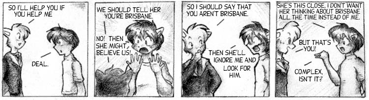 And thus the plot folds back in upon itself. I envisioned it being something like a slipknot, gradually getting more and more complicated until there's one strong tug and it all disappears, leaving nothing but a smooth rope. Kiranga pt 7