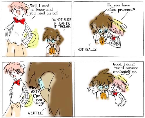 And yes, it's a week of alternating artists. Drawing comics takes up a lot of time, and one of them was up to doing two or three comics that week. I can't remember the exact circumstances, and they're probably not that interesting. But this it was planned like this. It worked quite well; I think Rachel and Orochi's styles complement each others'. I'm surprised I didn't do this more often.