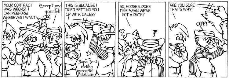 Alright, so Caleb and Hodges don't like each other. Why is Caleb hitting on Hodges? I mean, even with the convoluted gender confusion plot, that makes no sense. This comic got taken out of the Best-Of Run and if this weren't the Complete Archives, it'd get taken out of here too.