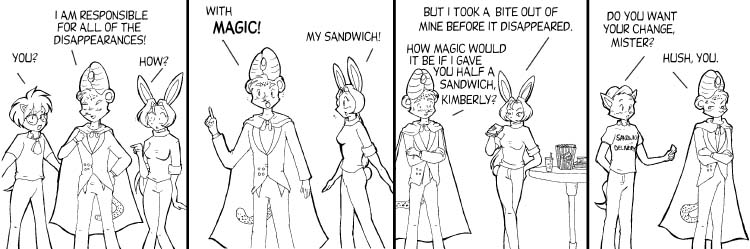 I love doing cliffhanger comics like this - it's not quite so dramatic when you can just scroll down, but still, I dig it.