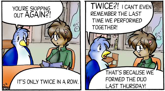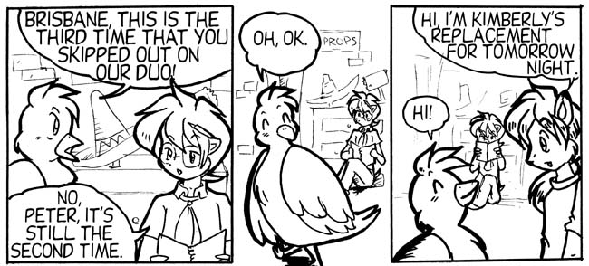 Yes, it's a weekly recap. All I can say is that it's a really nice use of stage scenery in the first panel, and it's entirely Isabel's idea.
