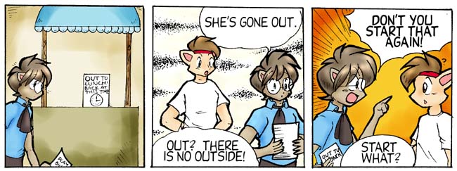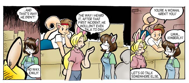 When a character doesn't show up for a few months because you don't have anything to do with them, it's common for them to just quietly disappear. I mean, this happened to Lyman in Garfield, Shermy in Peanuts, and everyone except Opus in Bloom County. I didn't want it to happen to Caleb. Emily pt 2
