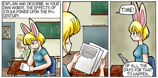 This is a horrible question for a history midterm. It can be answered either in two pages, two hundred, or two thousand. Steam power lead to industrialization, which lead to excess production in Europe, which lead to colonialism which lead to just about everything that hapened in the last quarter of that century. Kimberly, unfortunately, has a half page. Back when I was in high school, all these test questions had "in your own words".