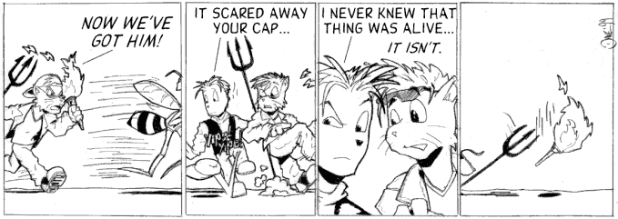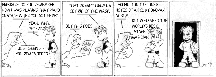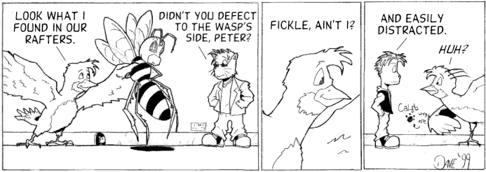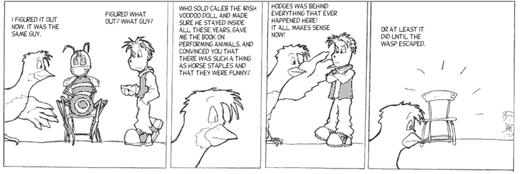 No, none of what Peter was saying is true. In Kevin & Kell, current events tended to tie to past events in a moderately complicated way, and the wasp was bending reality. Hodges was mentioned here because he was the only minor character I had that wasn't Goliath.