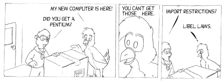 Because we'd make fun of it so hard. Because making fun of Intel and Microsoft was really big back in 1999. I think I was trying to pander to that crowd for this week.